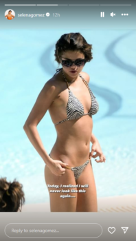 Përmes një Insta-story ajo ka shfaqur një foto në bikini ku ka shkruar “ sot e kam kuptuar se unë kurrë më nuk do të dukem kështu”.
