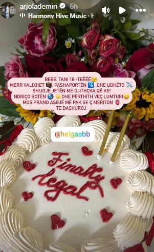 Në një postim të ëmbël dhe emocionues në Instagram, Arjola ka ndarë një tortë të zbukuruar me mbishkrimin “Finally legal” dhe një mesazh të ngrohtë, që fton vajzën të shijojë jetën me plotësinë që i takon.