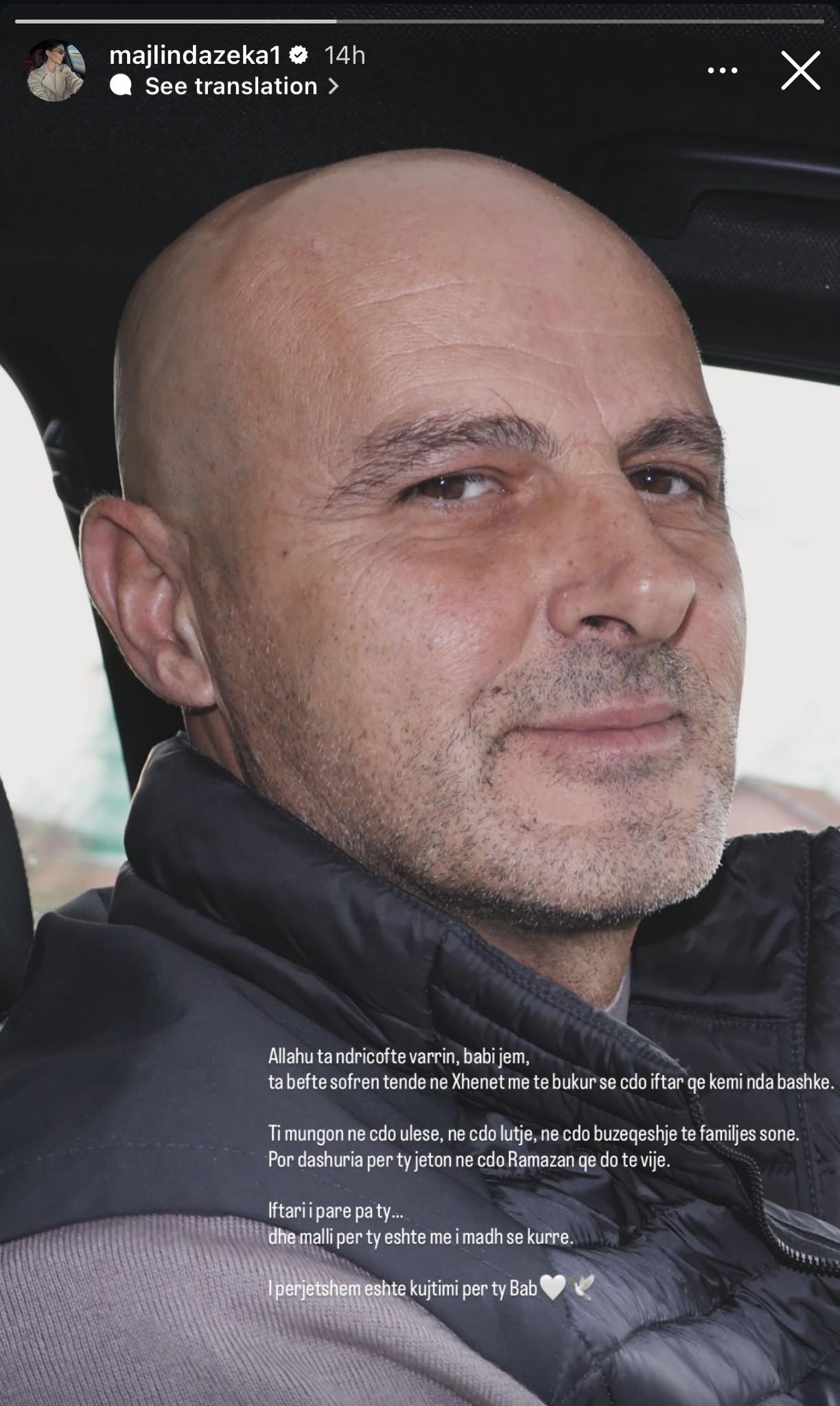 Me nisjen e muajit të shenjtë të Ramazanit, Majlinda ka publikuar një Instastory me një mesazh prekës kushtuar të atit, të shoqëruar me fotografinë e tij, shkruan “Kosovarja”.