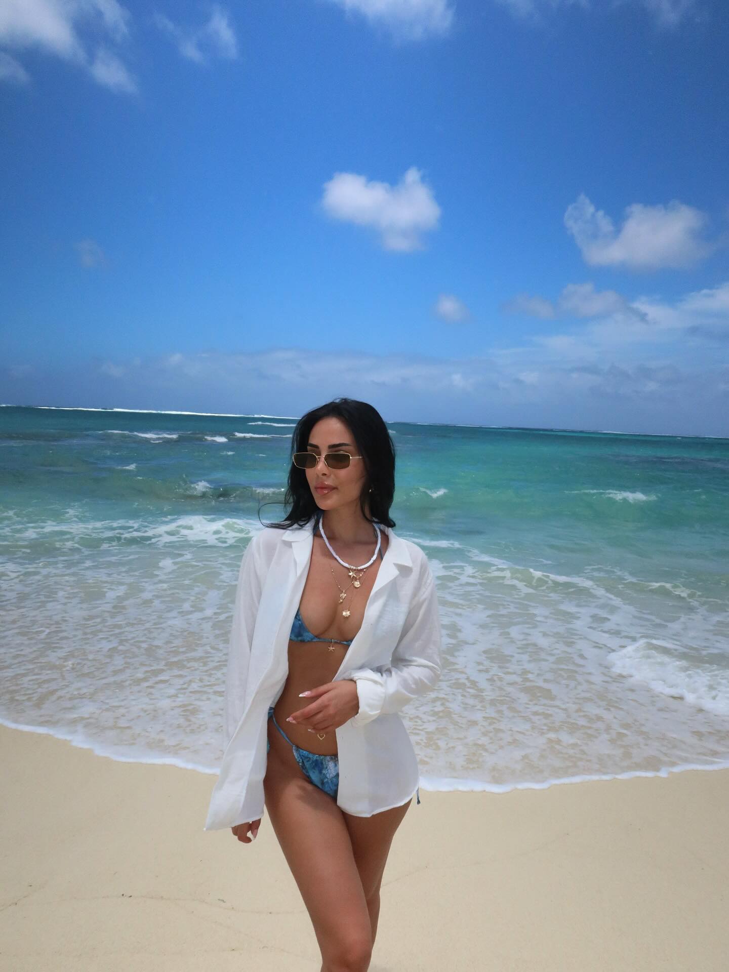 Nga një ishull indian, ka ndarë disa fotografi në bikine ku ka shfaqur asetet e bujshme trupore.