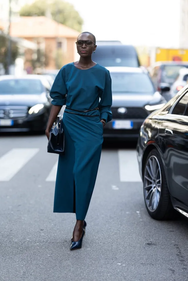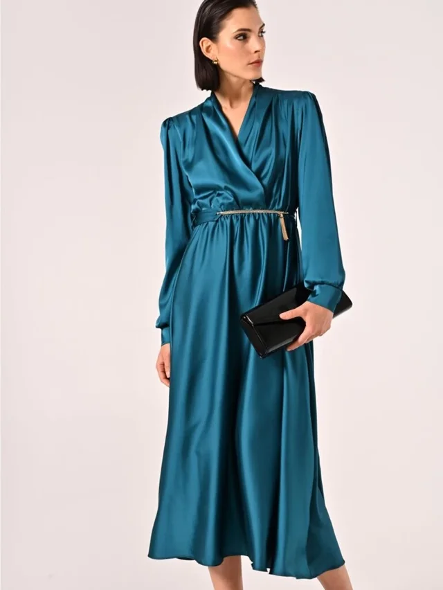 Mjafton një fustan në jeshil petrol për t’i shtuar një dozë feminiteti dhe elegance garderobës. Markat si Rinascimento dhe Ulla Johnson e sjellin këtë ngjyrë në kombinim me stofin e rrasët, duke krijuar modele të plisetuara dhe të gjithanshme, perfekte edhe për ditën.