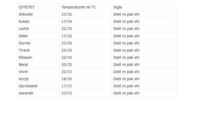 Moti parashikohet fillimisht i kthjellët më pas shtim gradual vranësirash mesatare dhe hera-herës në relievet kodrinore – malore deri të dendura.