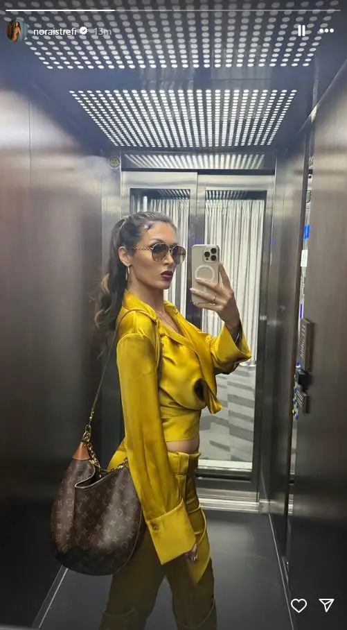Edhe sot, Nora ka publikuar një foto ku shihet e veshur me shumë stil dhe ka pozuar para pasqyrës së ashensorit.