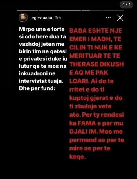 Në fakt, mollë sherri i kësaj historie ka qenë një emision tre vite më parë ku Meritoni ka marrë pjesë në Kosovë, pra në një televizion këtu në Kosovë ku ka treguar më tepër rreth raportit midis djalit dhe ish të dashurës në atë kohë ku sapo ishin ndarë. Ish e dashura jeton në Austri dhe ky nuk kishte shumë mundësi për ta takuar djalin. Ndërkohë, pas atij emisioni, Egesta i poston të gjitha ato fjalë. Pra, e gjithë kjo ngjarje ka ndodhur tre vite më parë.