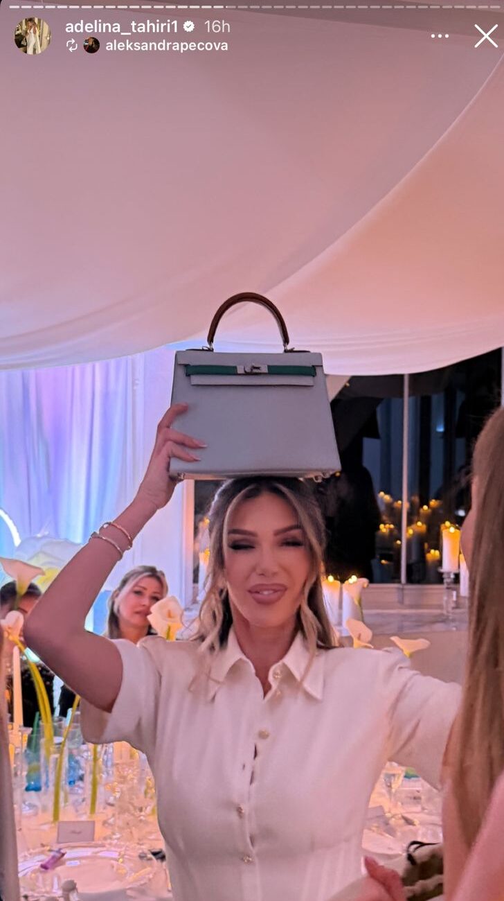 Një moment kulminant i festës ishin dhe dhuratat e çmuara. Ajo që spikati ishte dhurata nga motra e saj, e cila e surprizoi me një çantë tejet luksoze të markës prestigjioze “Hermès”. Këngëtarja e ndau këtë moment lumturie edhe me ndjekësit në Instagram, ku shihet duke pozuar duke e mbajtur çantën e shtrenjtë mbi kokë.