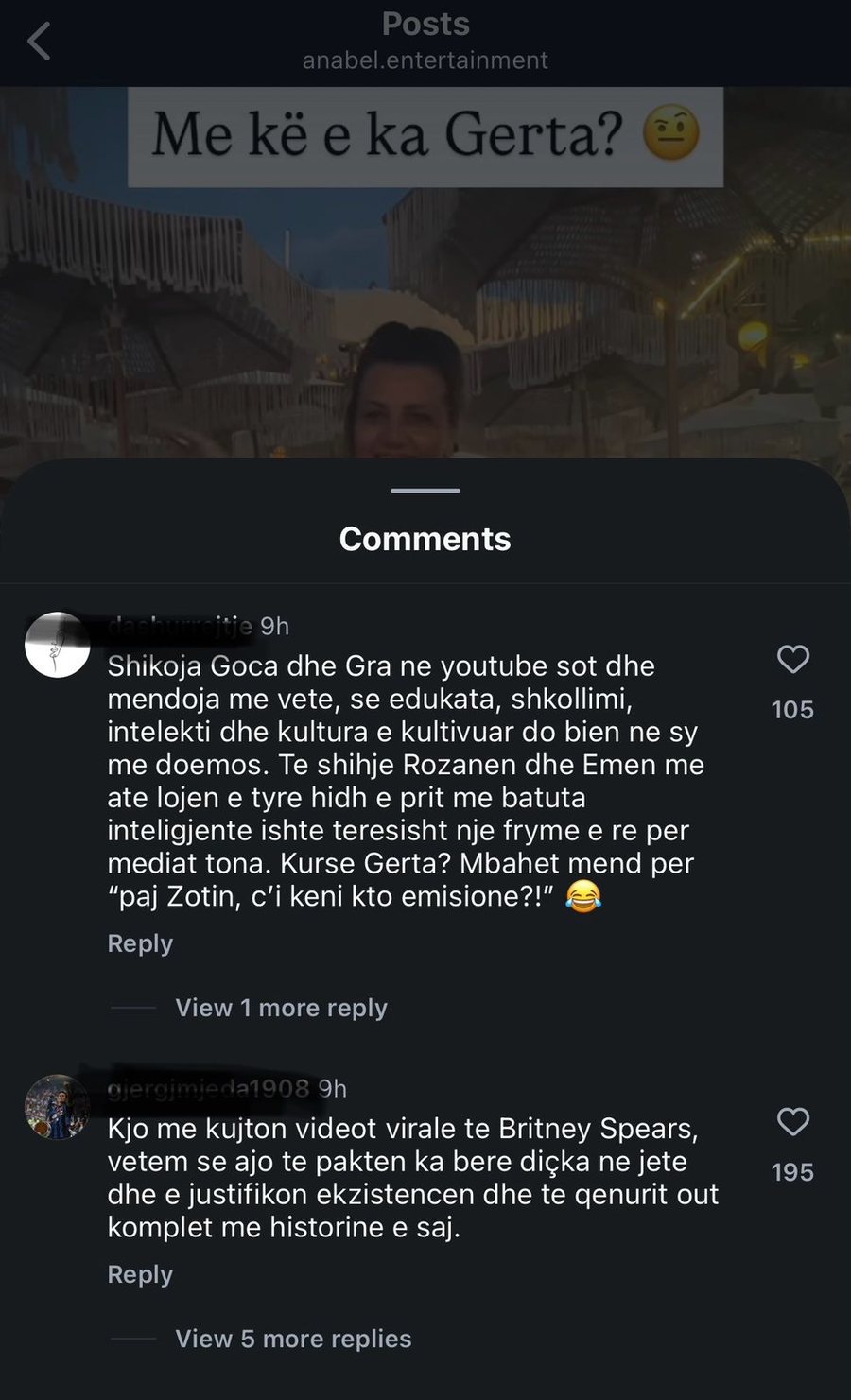 Mirëpo, fansat e Gertës nga “Big Brother”-i ose nuk e pëlqejnë më të preferuarën e tyre, ose s’kanë më interes, sepse poshtë këtij postimi të saj mbizotëruan komentet negative: