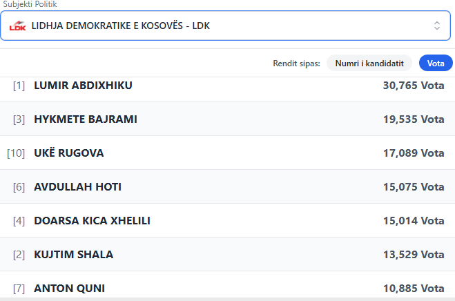 Në LDK prijnë Lumir Abdixhiku, Hykmete Bajrami, Ukë Rugova, Avdullah Hoti e Doarsa Kica Xhelili.
