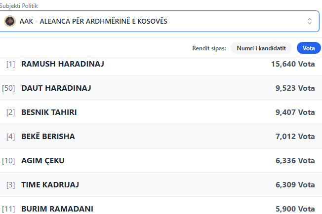 Sipas të dhënave të deritanishme kandidatët më të votuar në VV janë Albin Kurti, Glauk Konjufca, Albulena Haxhiu, Hekuran Murati e Donika Gërvalla.