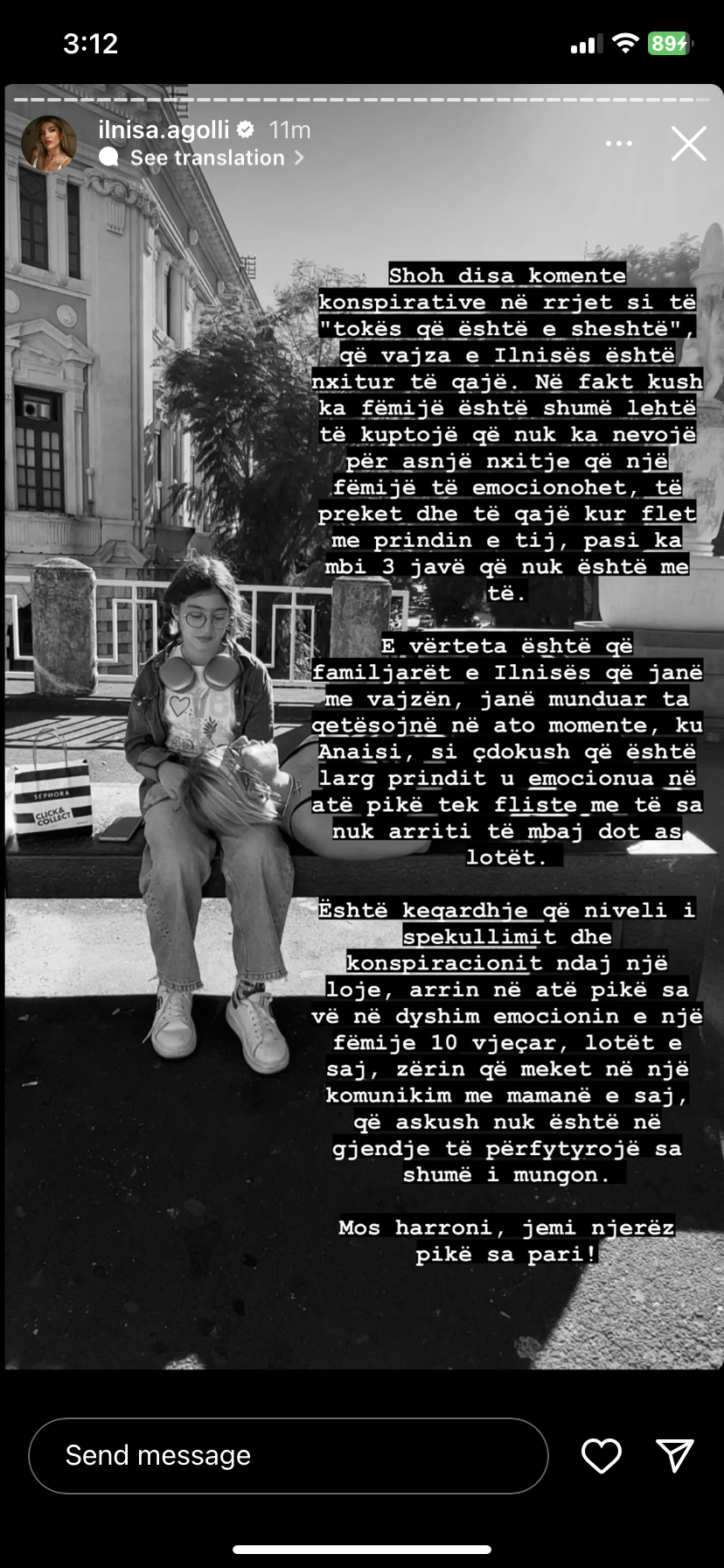 ‘Është keqardhje që niveli i spekulimit dhe konspiracionit ndaj një loje, arrin në atë pikë sa vë në dyshim emocionin e një fëmije 10-vjeçar, lotët e saj, zërin që meket në një komunikim me mamanë e saj, që askush nuk është në gjendje të përfytyrojë sesa shumë i mungon.’