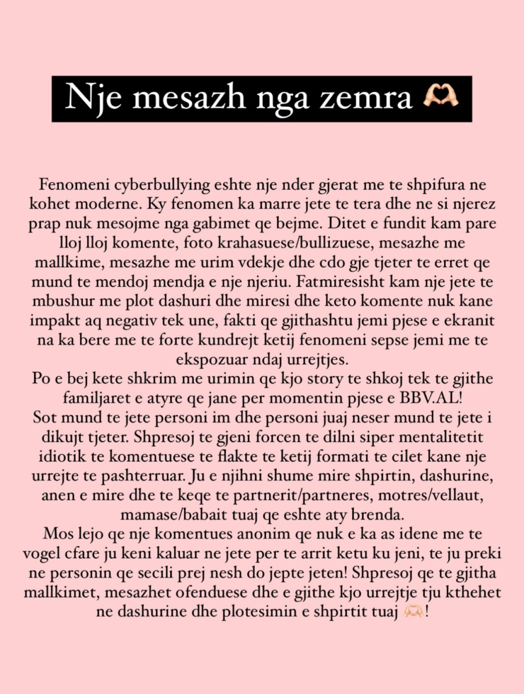 Megjithatë, partnerja e tij, Argjira, mbrëmjen e djeshme dërgoi një mesazh për të gjithë dhe shprehet se bullizmi po merr jetë njerëzish.