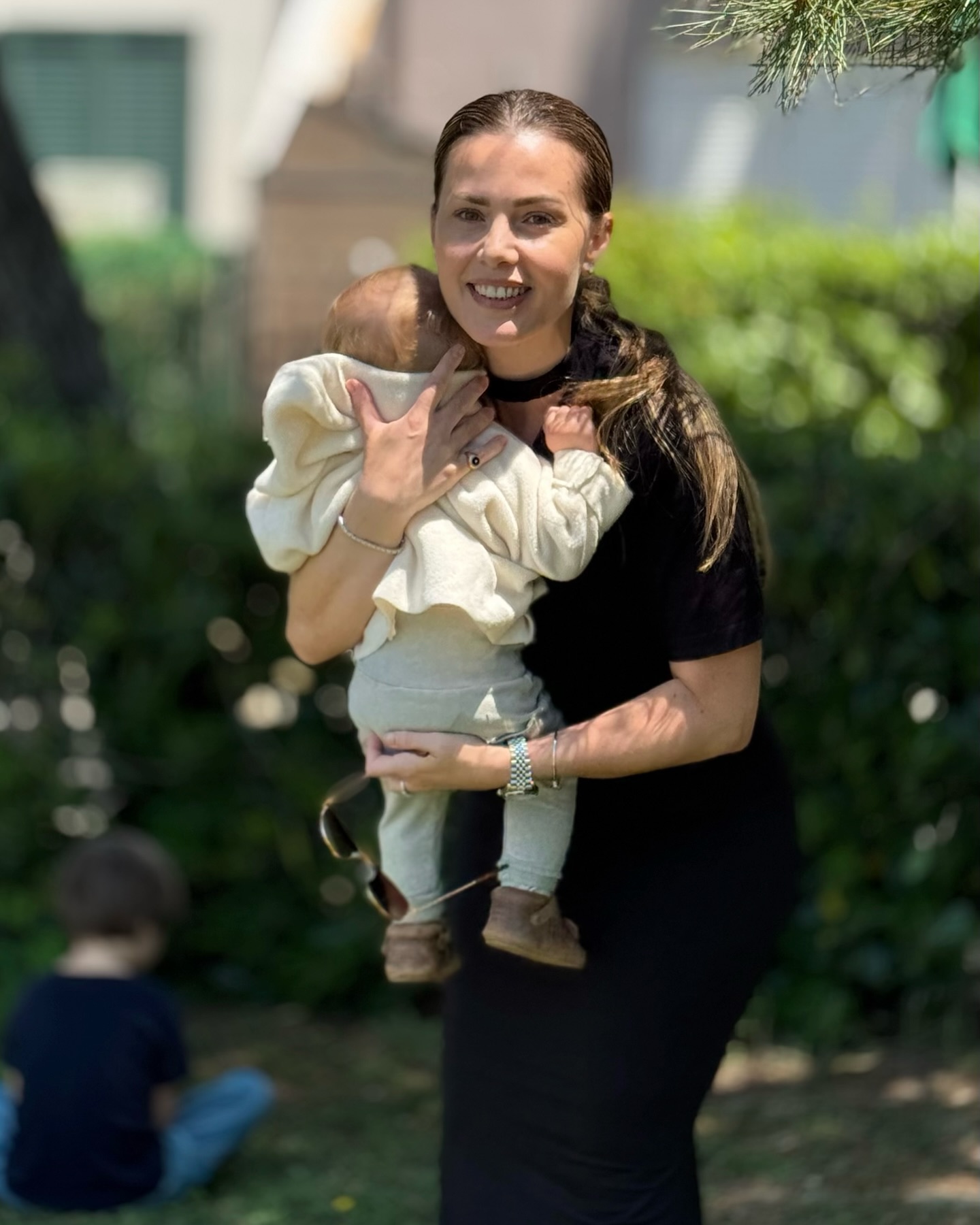 Olta në atë foto shihet me djalin në krahë dhe shumë e buzëqeshur.