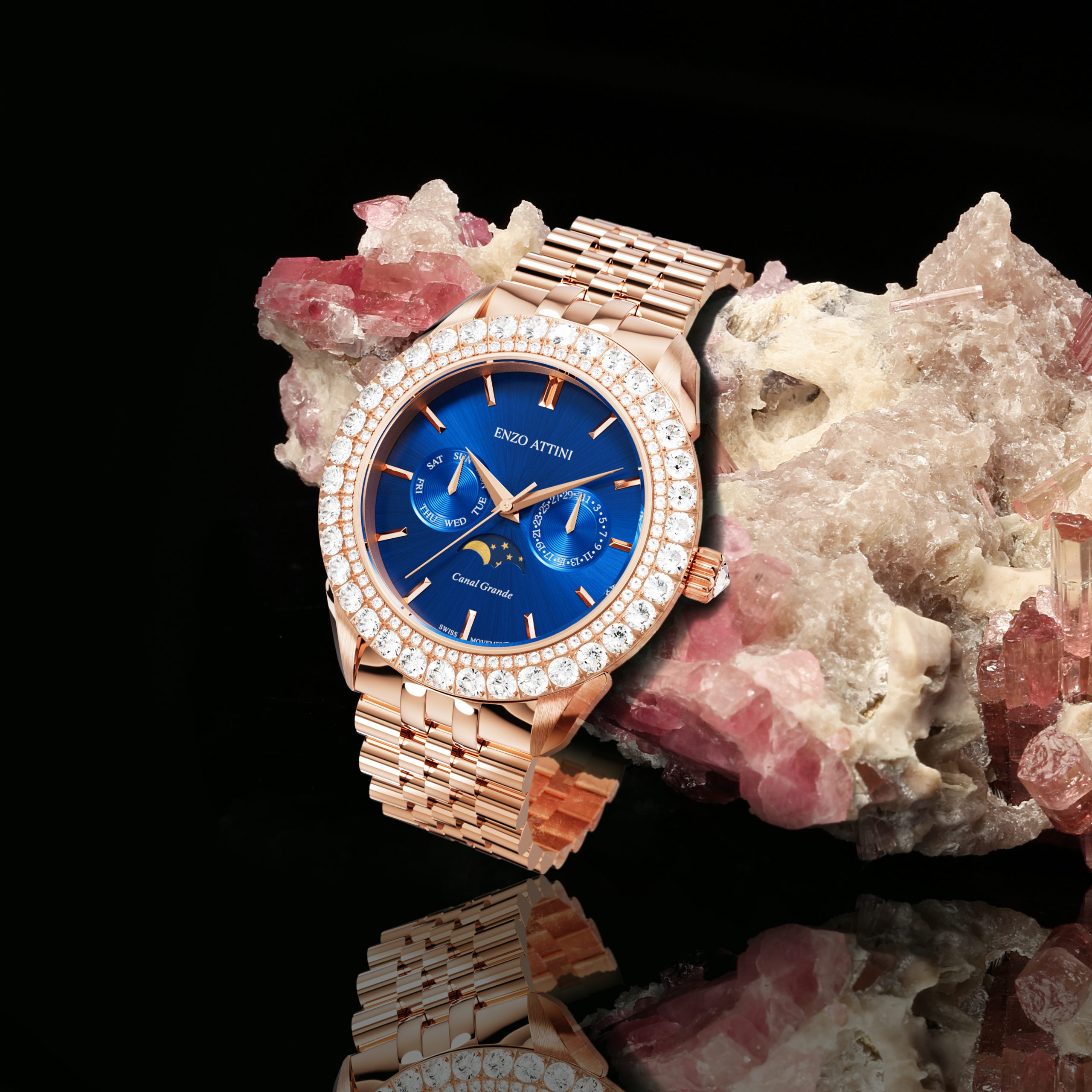 Enzo Attini mishëron thelbin e romancës dhe të sofistikimit, duke ofruar një koleksion të kuruar në detaje për të festuar dashurinë në të gjithë shkëlqimin e saj. Nga orët luksoze te syzet dhe aksesoret e punuar me shumë elegancë, çdo krijim është një testament për dashurinë e perjetshme. Për njeriun që vlerëson çdo moment të kaluar me të dashurin e tij, Enzo Attini prezanton një seri orësh mahnitëse që mbartin saktësinë dhe përsosmërinë e mjeshterve italian.