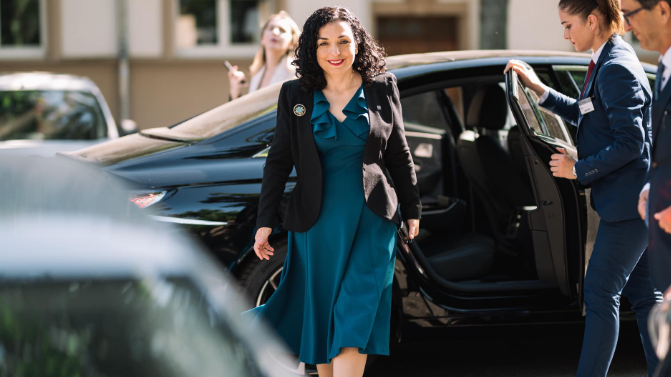 Pas përfundimit të seancës për Epopenë e UÇK-së, presidentja Osmani është pyetur nga mediat nëse do të kandidohet nga kryeministri Kurti për presidente.