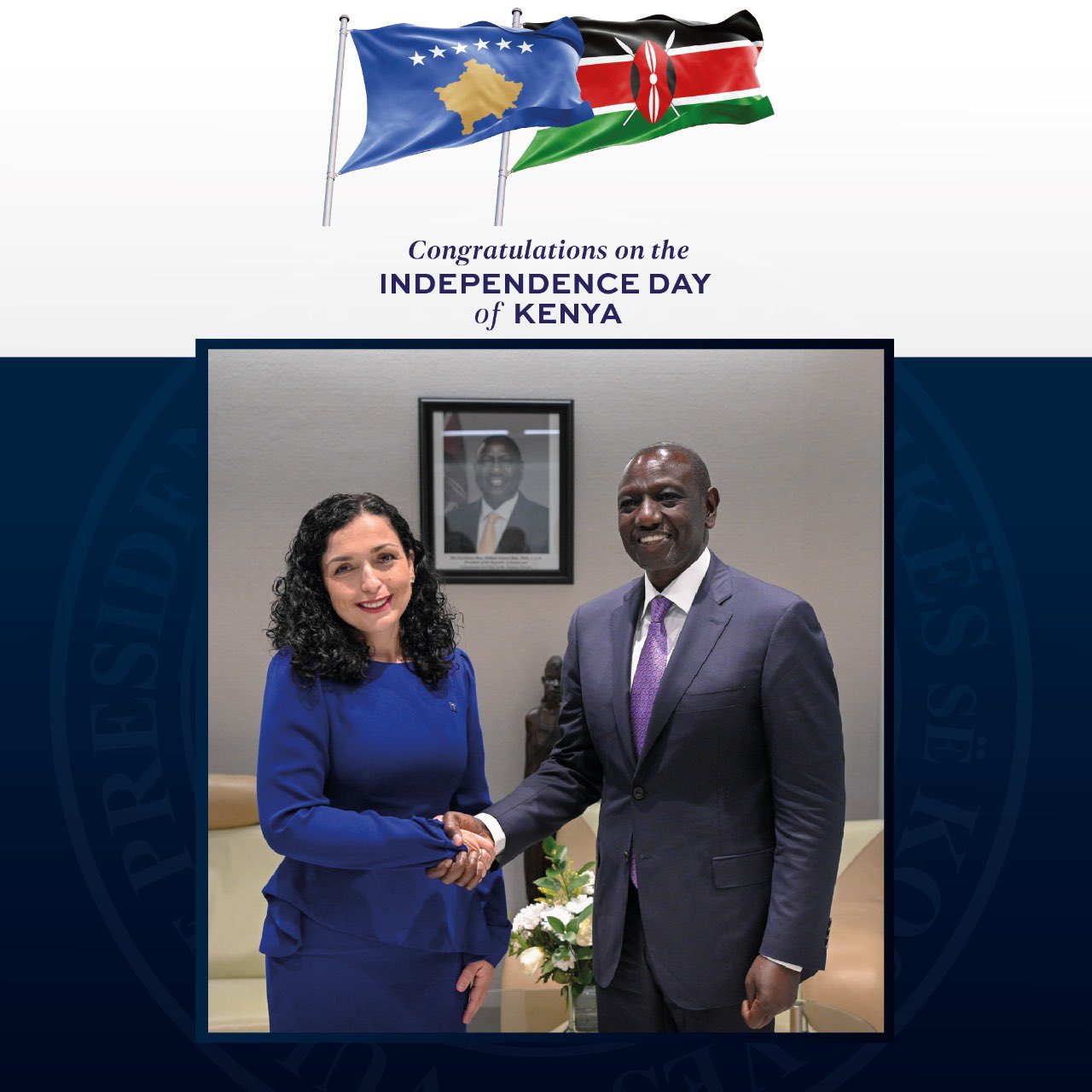 Presidentja e Kosovës, Vjosa Osmani e ka uruar popullin e Kenias me rastin e Ditës së Pavarësisë.