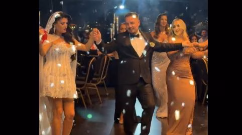 Dasma po mbahet me miq dhe familjarë të afërt, ndërsa çifti duket tejet i lumtur në këtë ditë speciale.
