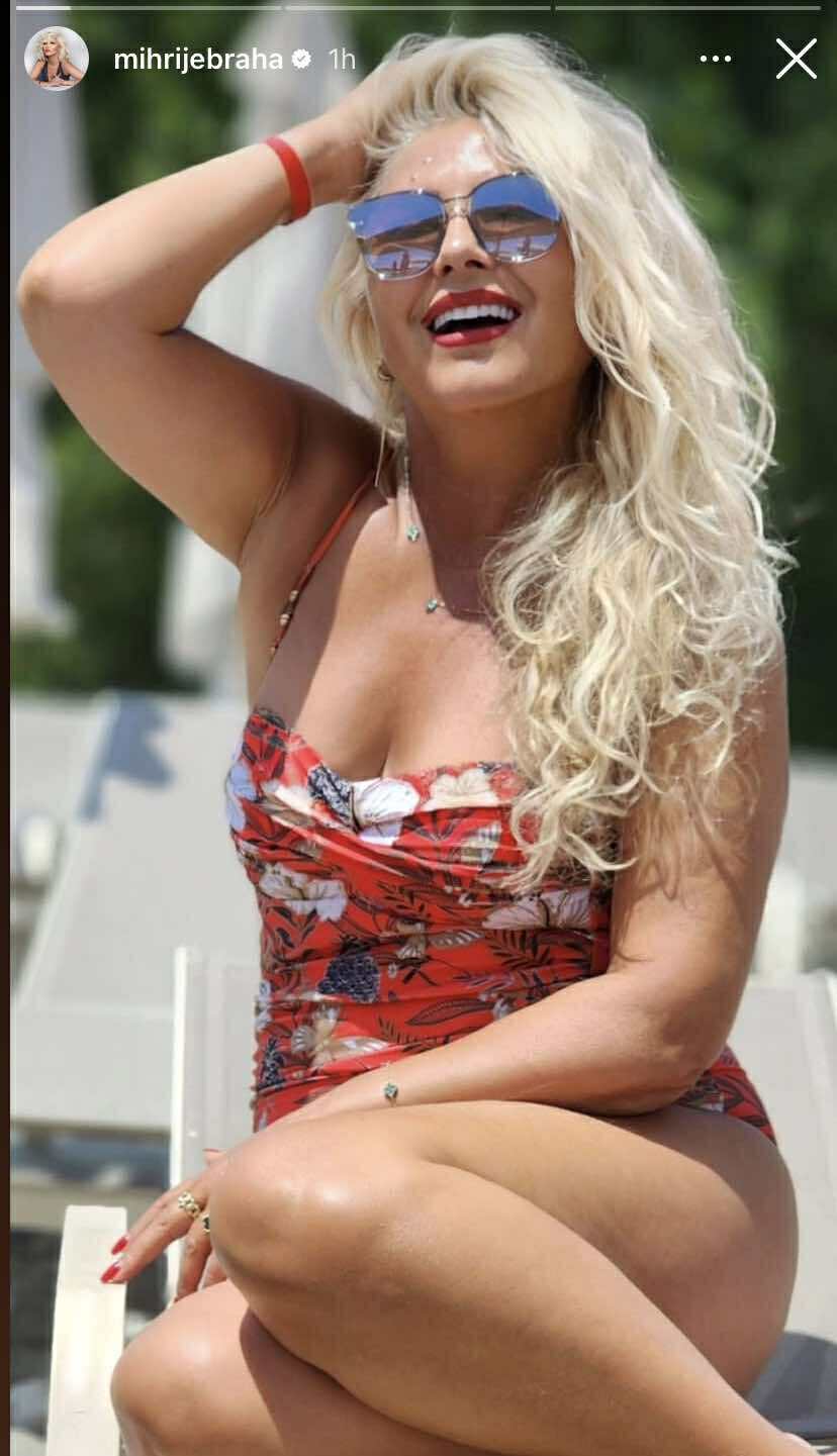 Fotot janë realizuar gjatë një pushimi, ku Mihrija duket në formë të shkëlqyer dhe plot stil, çka ka nxitur reagime të shumta në rrjetet sociale, shkruan “Kosovarja”.