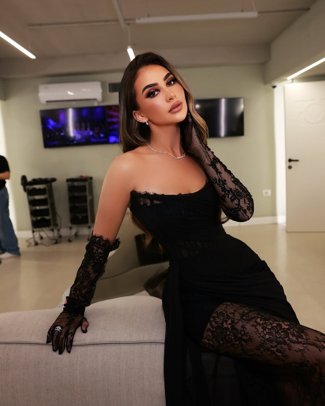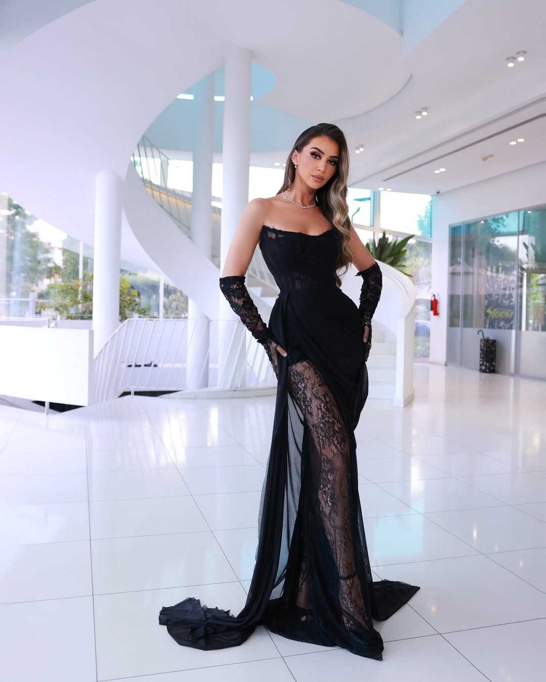 Bukuroshja është shfaqur me një fustan të zi elegant.