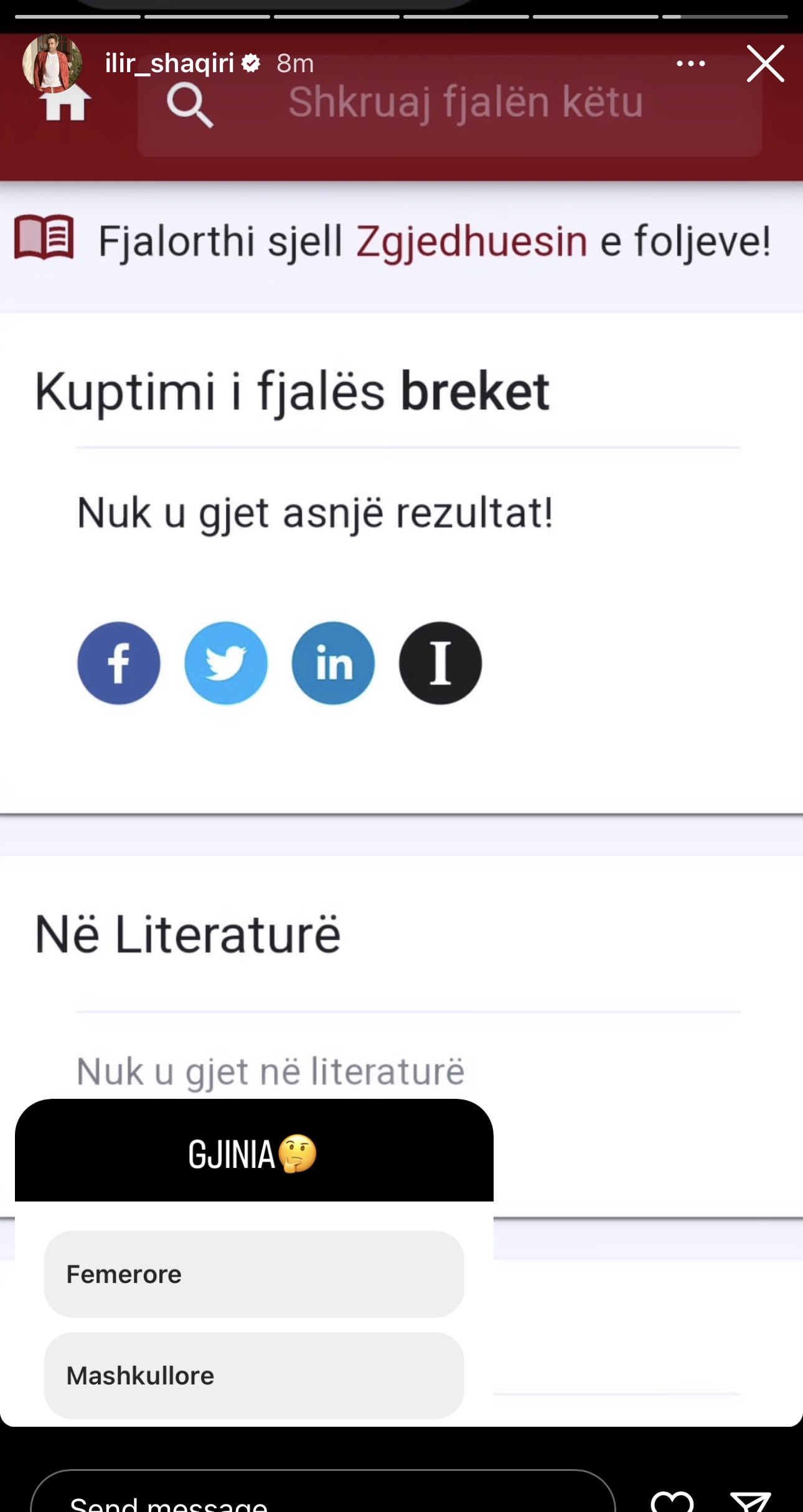 E përsa i përket kësaj përplasje, një ironizim ka ardhur nga ana e fituesit të BBV1, Ilir Shaqiri, i cila ka bërë këto postime në InstaStory.