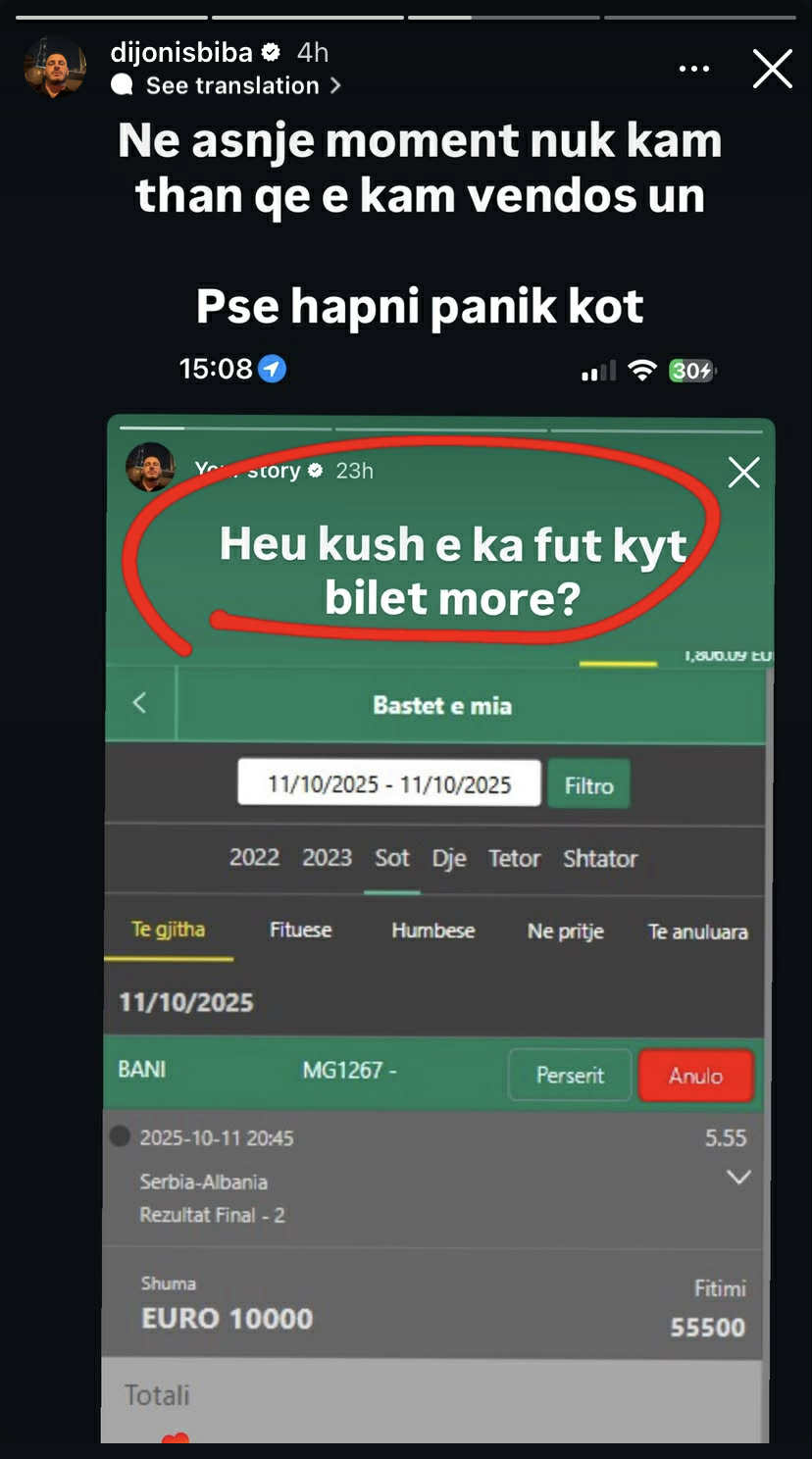 Pas publikimit të një bilete basti prej 10 mijë eurosh për ndeshjen Serbi–Shqipëri, në rrjet kanë qarkulluar lajme se Dijonis Biba është arrestuar.