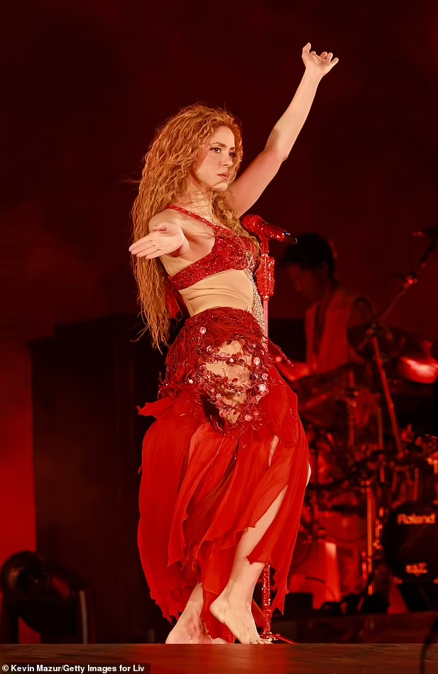 Shakira ndërroi disa herë kostumet, por natyrisht vëmendje mori performanca e saj elektrizuese.