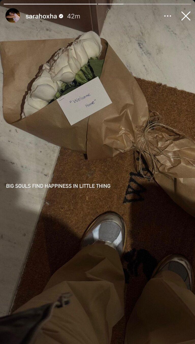 Ajo që është e konfirmuar është një story e publikuar në Instagram nga Sara, ku shfaqeshin trëndafila të bardhë dhe një shënim i shkurtër me mbishkrimin: “Mirë se erdhe në shtëpi”.