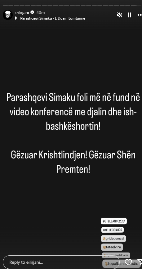 Tutje shtoi: “Gëzuar Krishtlindjen! Gëzuar Shën Premten”.