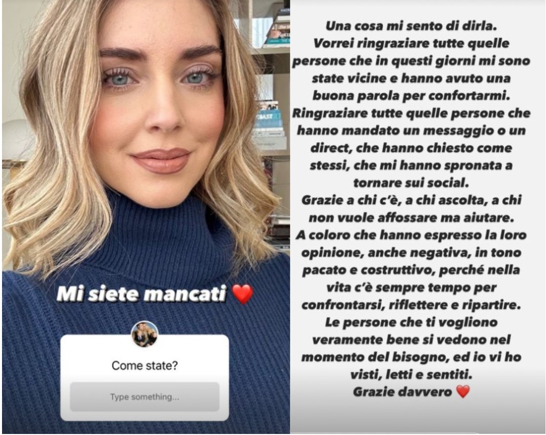 Pas disa javësh heshtje në mediet sociale për skandalin e asaj që duhet të kishte qenë një çështje bamirësie, tani në duart e Prokurorisë, blogerja italiane më popullore në botë iu është rikthyer postimeve për të falënderuar ata që i qëndruan pranë në atë që ishte me siguri momenti më i vështirë i karrierës së saj.
