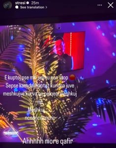 “E kuptoj pse mke sulmu non stop,sepse kam dal haptaz kundra juve meshkujve kurva që pëlqeni meshkuj me meshkuj, ncncncn. Ah more qafir”.