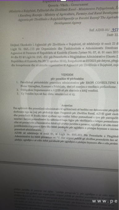 Faton Peci, ministër i Bujqësisë i ka “rënë pishman” për grantet që i dha këshilltarit të tij Naim Huruglica dhe vëllaut të deputetetes së VV`së Fitore Pacolli.