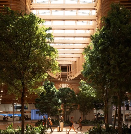 Një nga gjërat e para që pasagjerët mund të vënë re do të jenë 72 pemë të mëdha, duke përfshirë varietetet e arrës së zezë, fikusit dhe ullirit, të shpërndara në të gjithë terminalin. Gjithsej do të ketë rreth 5000 bimë të tjera.