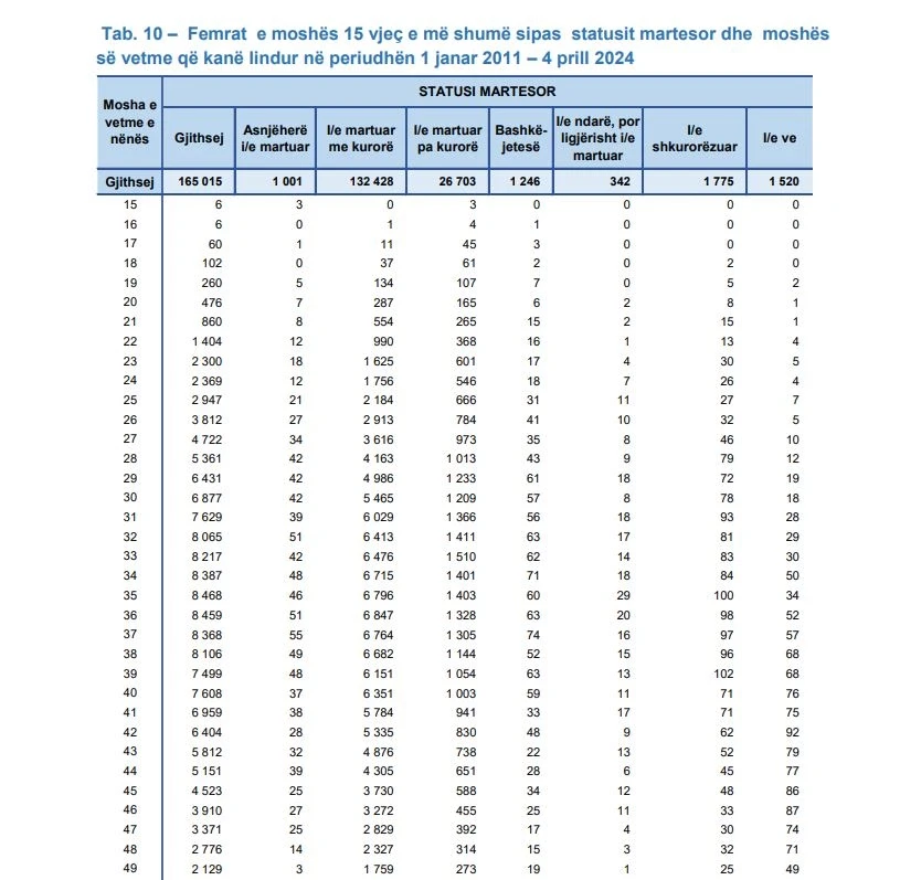 Në të dhëna siguron se 31 gra 60 vjeçe, 14 gra 61 vjeçe, 15 gra 62 vjeçe, 12 gra 63 vjeçe, 10 gra 64 vjeçe dhe 71 gra 66+ vjeçe ishin në mesin e atyre që lindën në periudhën 2011-2024.