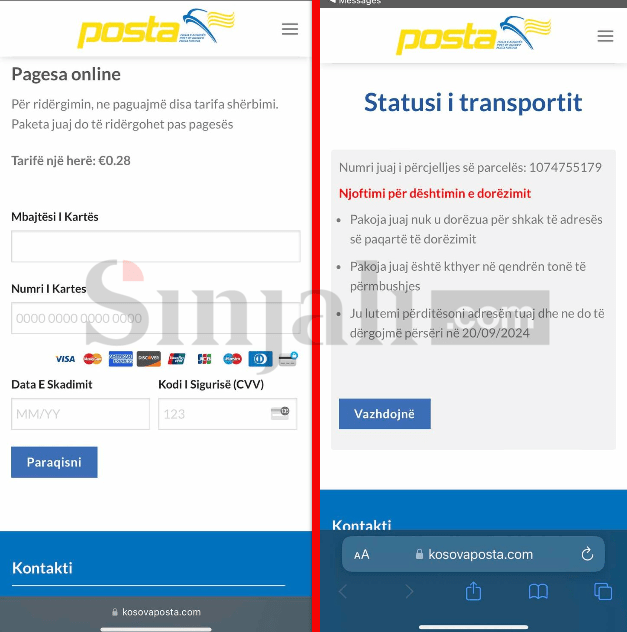 Një skemë mashtrimi me qëllim përfitimin e kundërligjshëm përmes disa mesazheve që po iu dërgohen qytetarëve së fundmi ka ngritur shqetësim të madh. Shumë prej tyre, kanë rënë pre e mashtruesve, të cilët arritën që në emër të ‘Postës së Kosovës’ të kapin para edhe me mijëra euro, raporton Gazeta Sinjali.