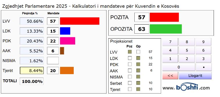 Sipas kalkulatorit për mandatet në Kuvend, VV do të ketë 57 deputetë.