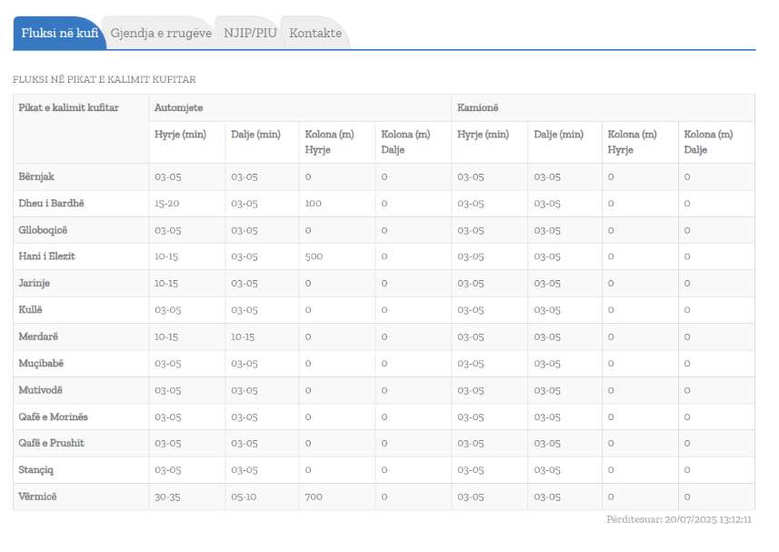 Qendra Kombëtare për Menaxhim Kufitar ka përditësuar të dhënat mbi fluksin në kufi.