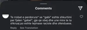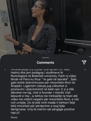 Ky reagim vjen pas komenteve të shumta që ajo mori në rrjet, nga ndjekësit që i kërkonin të ndryshonte termin, ose të hiqte videon, pasi është raciste dhe ofenduese për komunitetin rom.