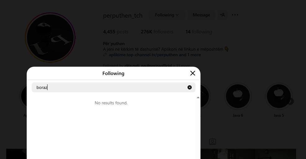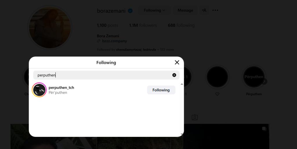 Duke hulumtuar në profil shohim që llogaria zyrtare e emisionit nuk e ndjek atë ndërsa Bora po.
