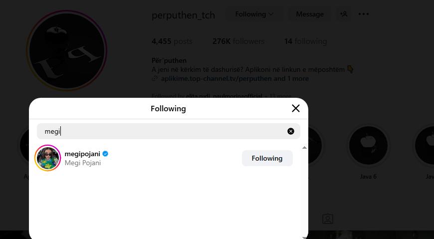 Kjo llogari e ndjek vetëm moderatoren aktuale të emisionit, Megi Pojanin.