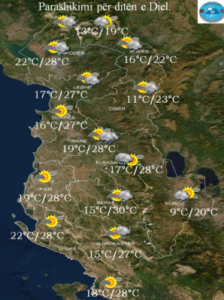 Ditën e dielë vendi ynë pritet të jetë nën ndikimin e kushteve atmosferike relativisht të paqëndrueshëm. Moti pritet të jetë fillimisht i kthjellët më pas me alternime vranësirash në shtim.
