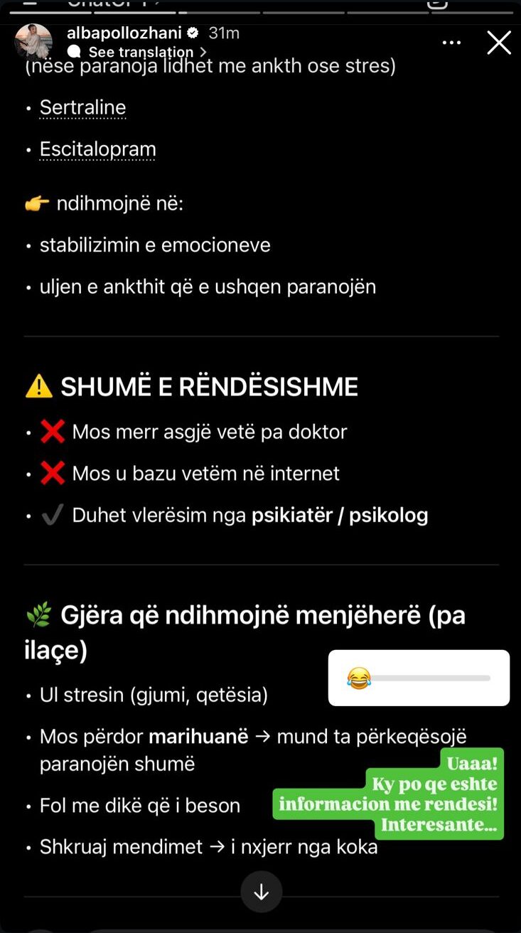 Duke vazhduar më pas me Story që fliste për paranojën, duke theksuar se “Kur paranoja të bën me humb dikë të vërtetë… kupton shumë vonë çfarë ke pas.” Ky postim dukej qartë si një reagim ndaj shkrimeve të Lim-it.
