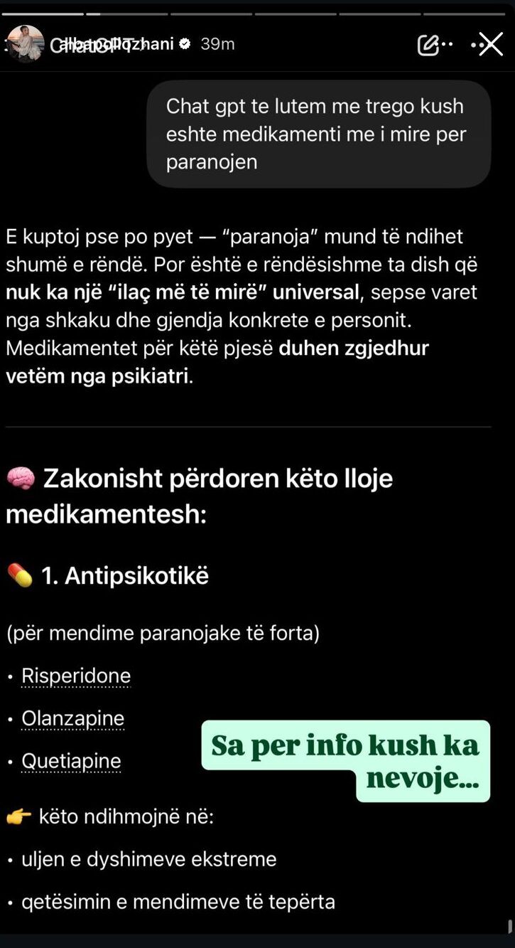 Por Alba nuk e la me kaq! Ajo kërkoi ndihmën e ChatGPT-it për të përkufizuar paranojën.