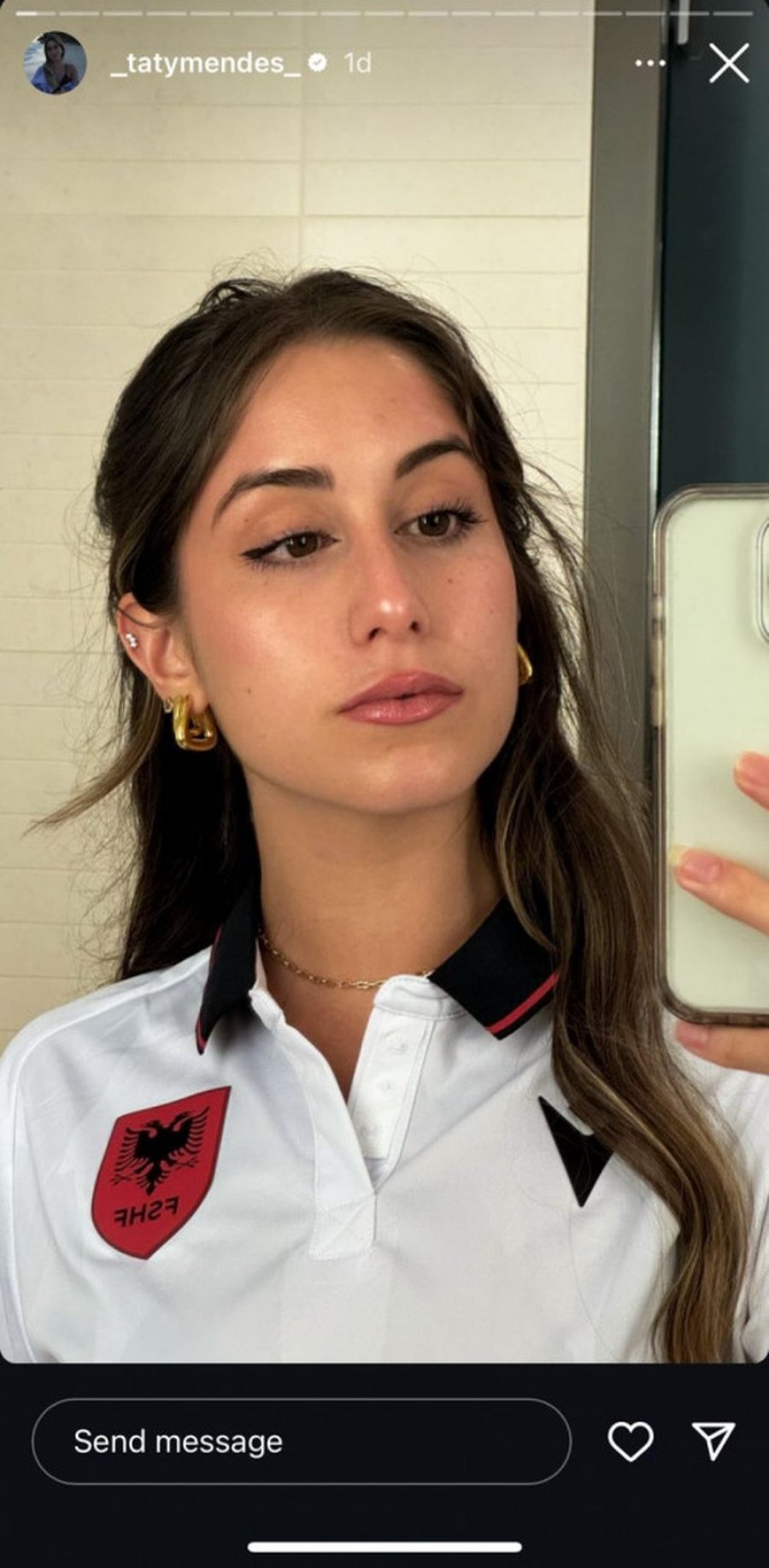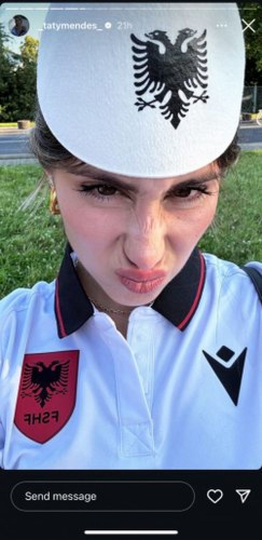 E emocionuar me paraqitjen e kombëtares së Shqipërisë u shpreh edhe vajza e trajnerit Silvinjo, Taty Mendes, e cila publikoi foto dhe video nga tribunat e stadiumit të ndeshjes së djeshme.