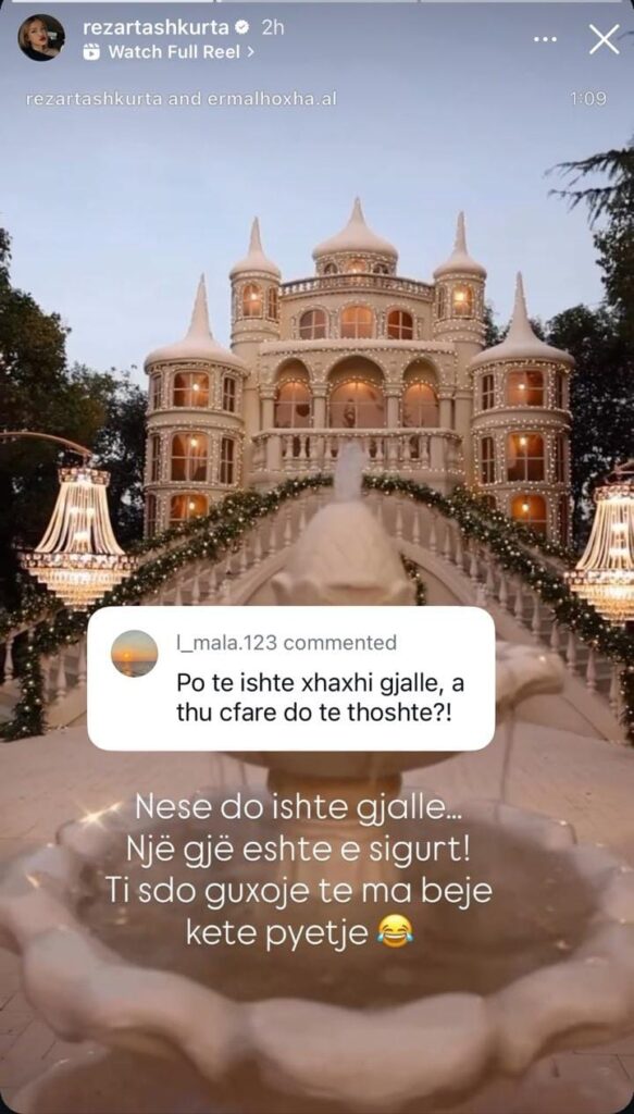 Në një video me bashkëshortin e saj Ermal Hoxhën të publikuar në profilin e saj në Instagram, një ndjekës i ka shkruar: