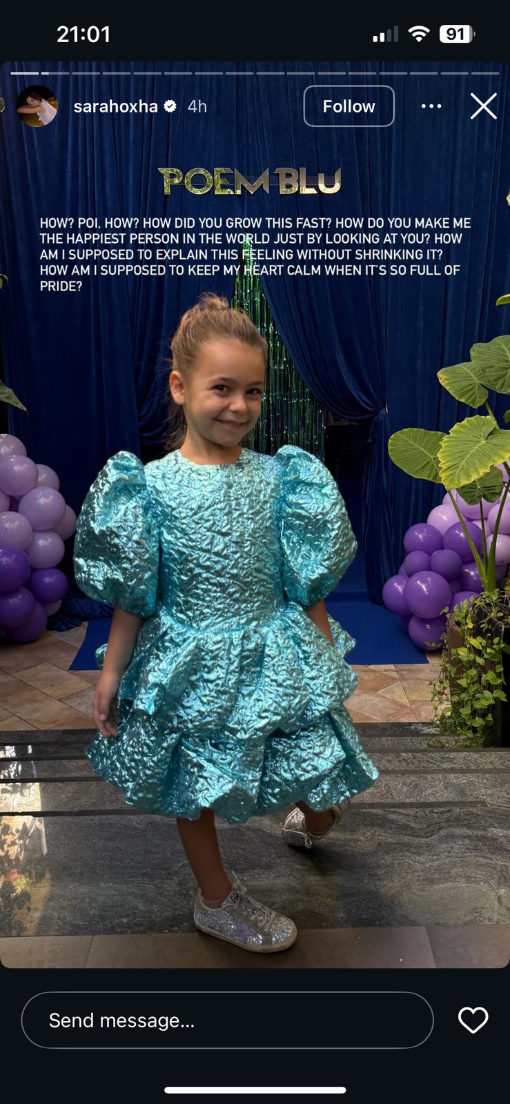 Poem Blu, vajza e këngëtarit Ledri Vula dhe influenceres Sara Hoxha, ka festuar sot ditëlindjen e saj të pestë.