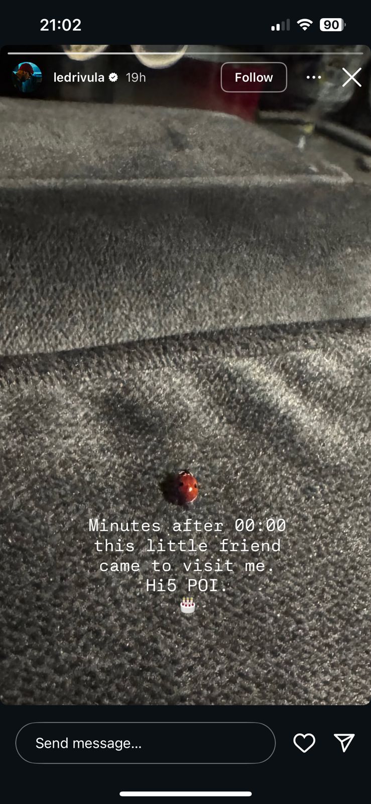 Ledri ka postuar në rrjetet sociale një foto tek duket një nusepashkë, ndërsa shkruan se ajo i ka shkuar pranë pak minuta pas orës 00:00.