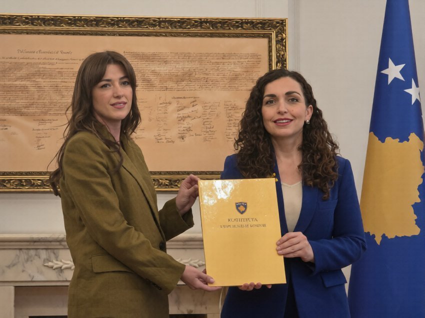 Teksa Haxhiu i dhuroi Osmanit një buqetë me lule, kjo e fundit, ashtu siç e do zakoni, ia dhuroi Haxhiut Kushtetutën e Republikës së Kosovës.