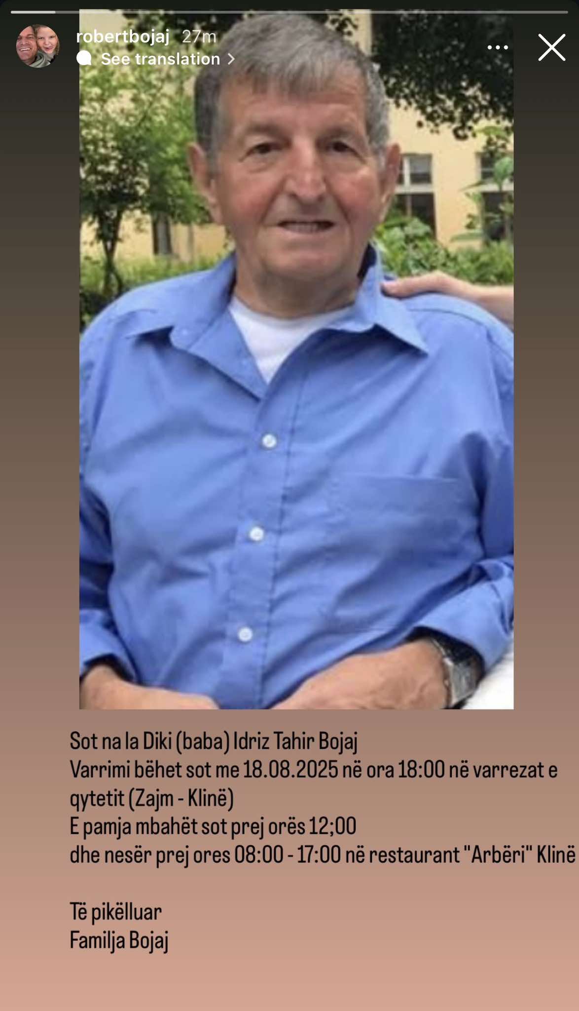 Në postimin e tij, Bojaj shprehu dhimbjen për humbjen e njërit prej njerëzve më të shtrenjtë të jetës së tij.
