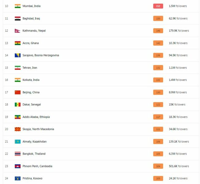 Prishtina këtë të diel po renditet e 24-ta në botë sa i përket ndotjes së ajrit.