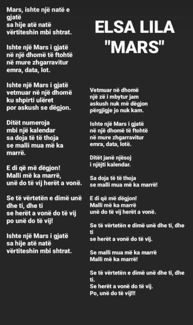 Ndërsa për t’i ardhur në ndihmë njerëzve, vetë Elsa e ka publikuar tekstin në rrjetet sociale.
