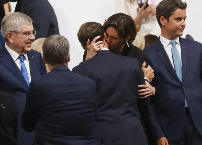 Fotoja tregon Macron, 46 vjeç, i cili kap krahun e ministres dhe afrohet ta puthë, ndërsa kjo e fundit njërën dorë vendos tek krahu i Macron dhe tjetrën rreth qafës së tij, ndërsa e puth në faqe. Kjo puthje ka ngjallur reagime të shumta, ku shumë njerëz e kanë quajtur si të turpshme dhe të papërshtatshme. Macron e emëroi Oudéa-Castéra-n si ministre të Arsimit të Francës në janar, por e hoqi atë nga posti pas më pak se një muaji pas zbulimeve se ajo i kishte arsimuar fëmijët e saj në shkolla private luksoze dhe bëri komente përçmuese për shkollat publike ku ajo jetonte.