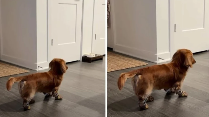 Megjithatë, sapo u përpoqën t’i vendosnin çizmet, Gill refuzoi të bënte edhe një hap – u ngrit si statujë, me bishtin pezull dhe pa lëvizur, vetëm duke fikur përpara.